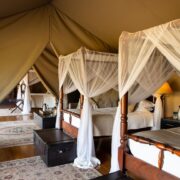 Upon landing at the Mara airstrip, you will be warmly received by your camp’s driver-guide and transferred to the elegant Sand River Mara Camp, a luxurious tented retreat that beautifully captures the romance and adventure of the 1920s safari era. The camp’s stylish design and serene riverside setting make it the perfect base for exploring the Mara’s abundant wildlife.